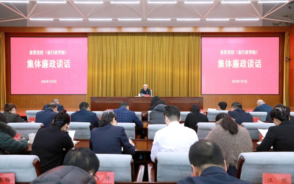 1月3日,省委党校(省行政学院)召开集体廉政谈话会议。常务副校(院)长周英东主持会议,校(院)委班子成员、二级巡视员以及各处室班子成员参加会议。