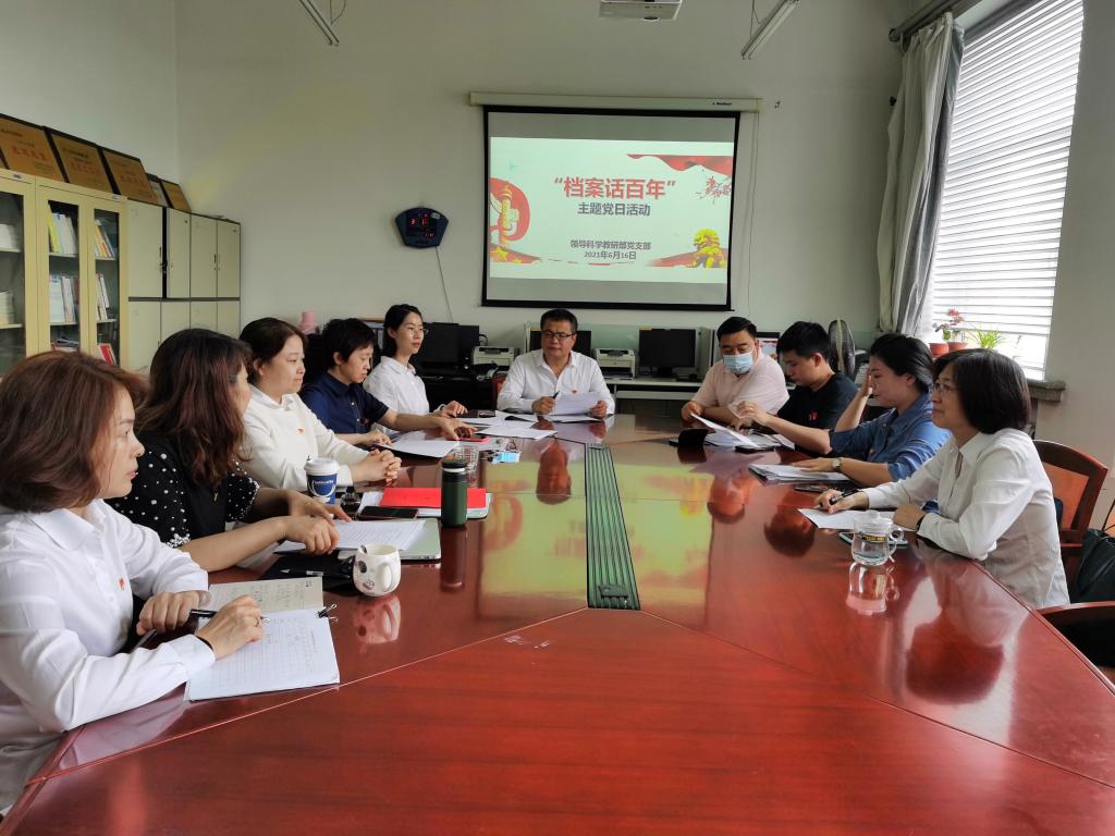 6月9日是第14个国际档案日,今年“国际档案日”的主题是“档案话百年”,为庆祝中国共产党建党100周年、新修订《中华人民共和国档案法》颁布实施,大力弘扬社会主义核心价值观和爱党爱国精神,立足岗位开展好党史学习教育和“我为群众办实事”工作, 2021年6月16日下午,领导科学党支部在支部书记孙昭的带领下,开展了主题为“档案话百年”的主题党日活动。